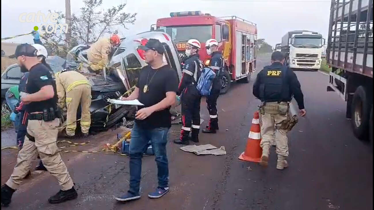 Dois carros bateram na BR-163, no trecho entre Cascavel e Toledo, na tarde desta segunda-feira (15). Duas pessoas morreram no local; ainda não há identificação.