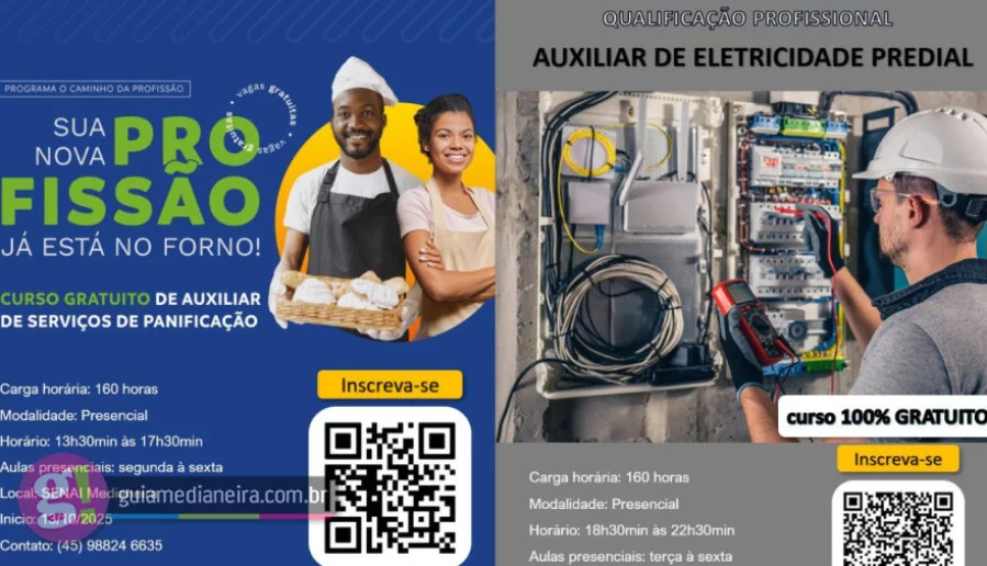O SENAI Medianeira está com inscrições abertas para dois cursos gratuitos de qualificação profissional, oferecendo novas oportunidades de aprendizado e inserção no mercado de trabalho. As formações são totalmente presenciais e contam com 160 horas de duração cada, voltadas para quem deseja conquistar uma nova profissão.