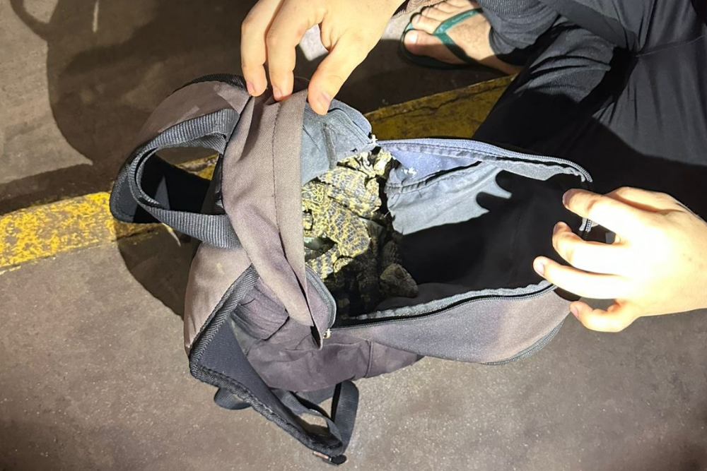 A Receita Federal, com apoio da Polícia Federal e da Força Nacional, apreendeu 10 lagartixas-de-crista, 12 jacarés, uma sucuri e uma píton durante fiscalização na Ponte Internacional da Amizade, na noite deste sábado (18). Os animais estavam vivos e escondidos em mochilas levadas por um passageiro de táxi paraguaio.