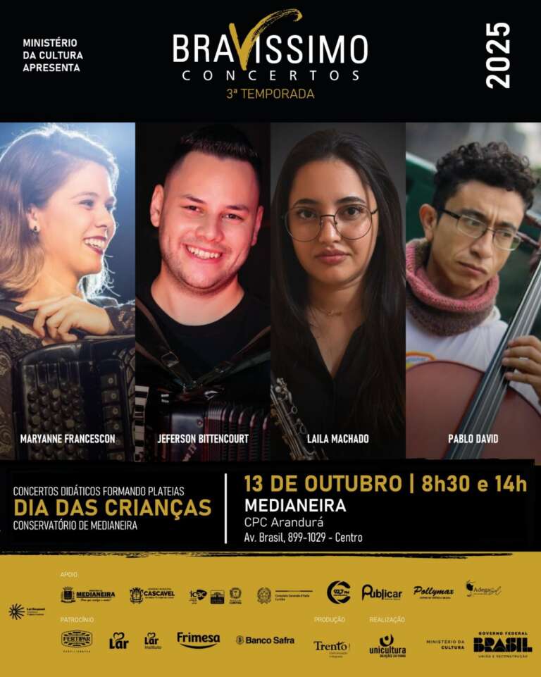 MedianeiraMedianeira – Bravíssimo especial Dia das Crianças0 Comentários1 Min de LeituraEm outubro no mês das Crianças teremos um evento aos pequenos! Bravíssimo Concertos, o Conservatório de…