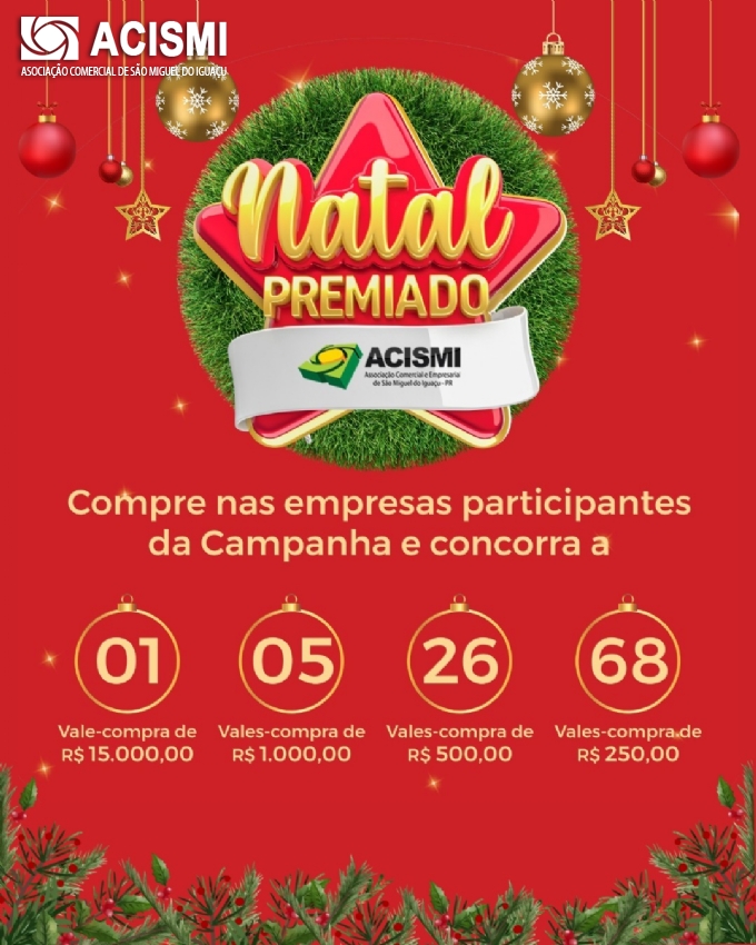 São Miguel do IguaçuACISMI anuncia campanha de Natal com R$ 50 mil em vale-compras0 Comentários2 Min de LeituraA Associação Comercial e Empresarial de São Miguel do Iguaçu (ACISMI) lançou oficialmente a Campanha de…